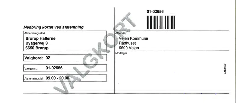 Alle stemmeberettigede vælgere får inden afstemningsdagen tilsendt et valgkort.
